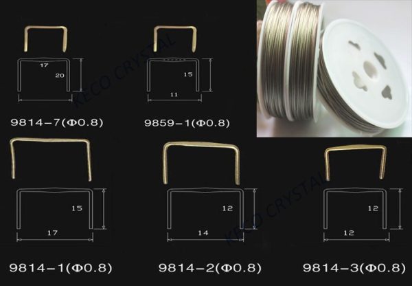 The hook, hanger, pins, clips, prongs and wire are used to attach the crystal chandelier parts and frame the crystal chandelier. The type including hanger, prongs, hook, pins, clips, hangers, open eye pins, headed pins, bow tie hanger, oval ring, round ring, with gold plated, brass, chrome metal material to keep good quality.