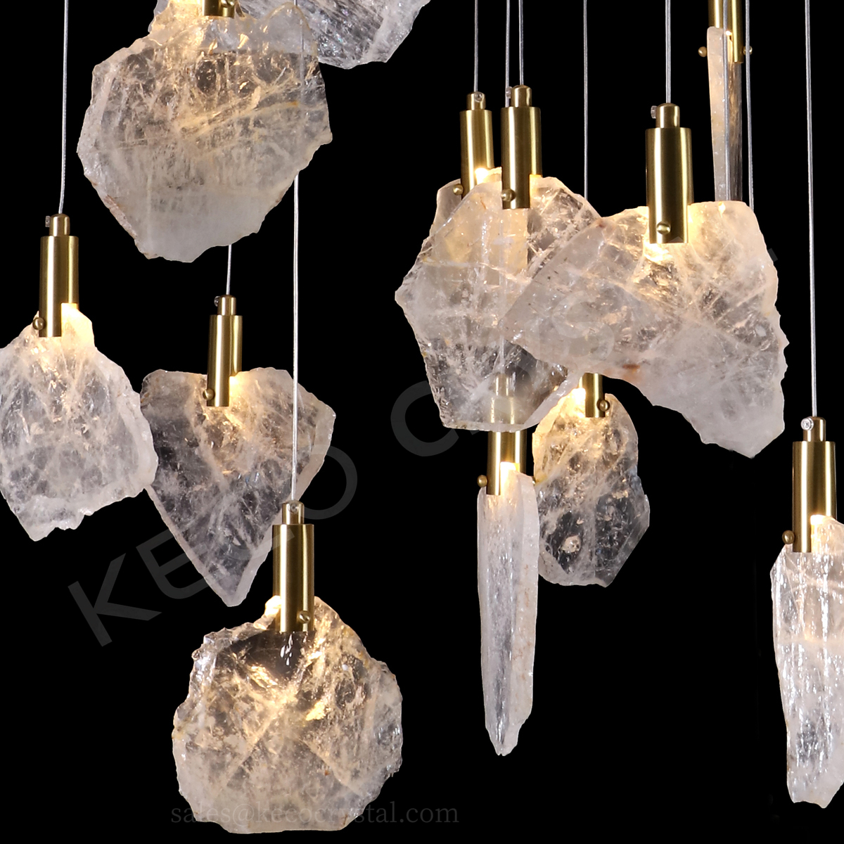 Rock Crystal Cup is made from Quartz Stone, each chandelier cup are polished by hand, and be used for Brass chandelier
