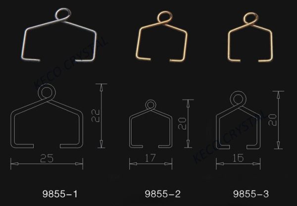 The hook, hanger, pins, clips, prongs and wire are used to attach the crystal chandelier parts and frame the crystal chandelier. The type including hanger, prongs, hook, pins, clips, hangers, open eye pins, headed pins, bow tie hanger, oval ring, round ring, with gold plated, brass, chrome metal material to keep good quality, and with many size to meet difference requirements.